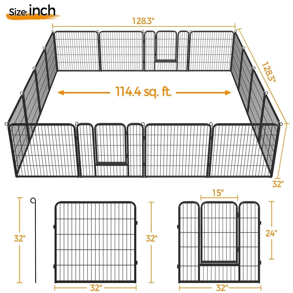 Yaheetech Heavy Duty Metal Dog & Cat Playpen, Black, 32-in, 16-panel