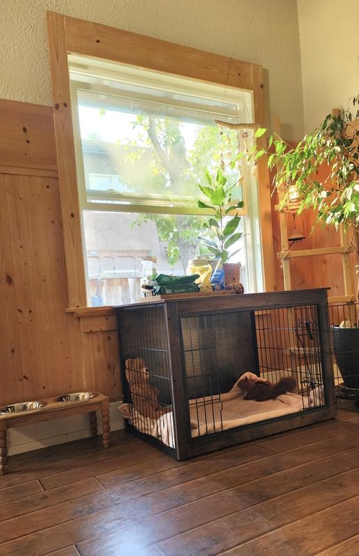 Yaheetech Industrial Wooden Dog Crate with Cushion, 38-in, Gray