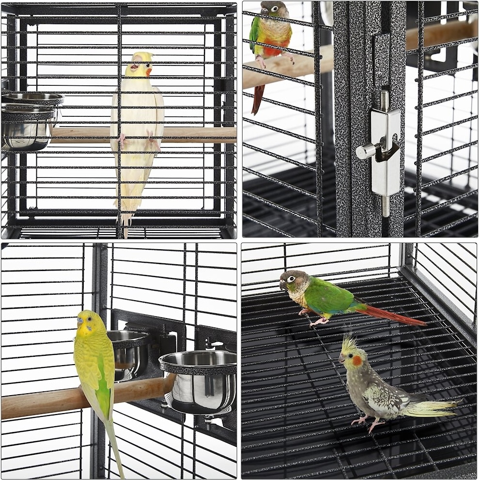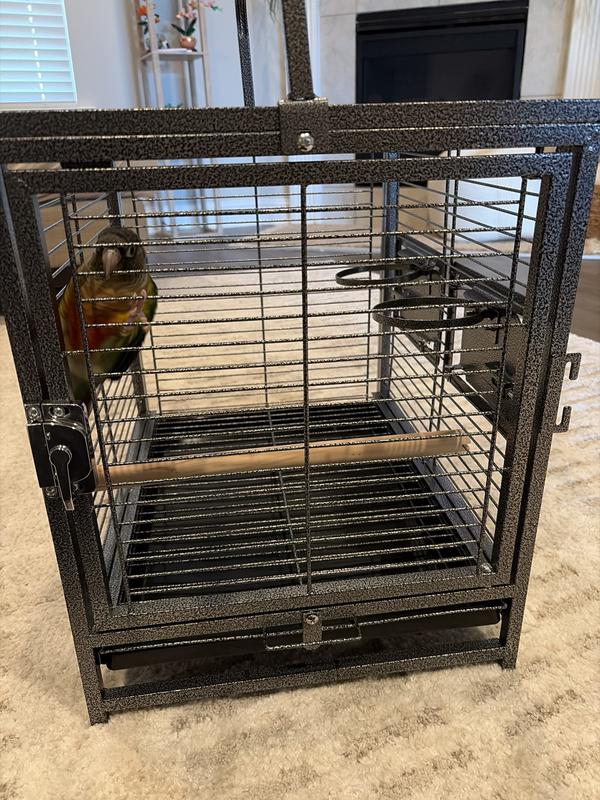 Yaheetech Iron Travel Bird Cage Carrier, Hammered Black, 26-in