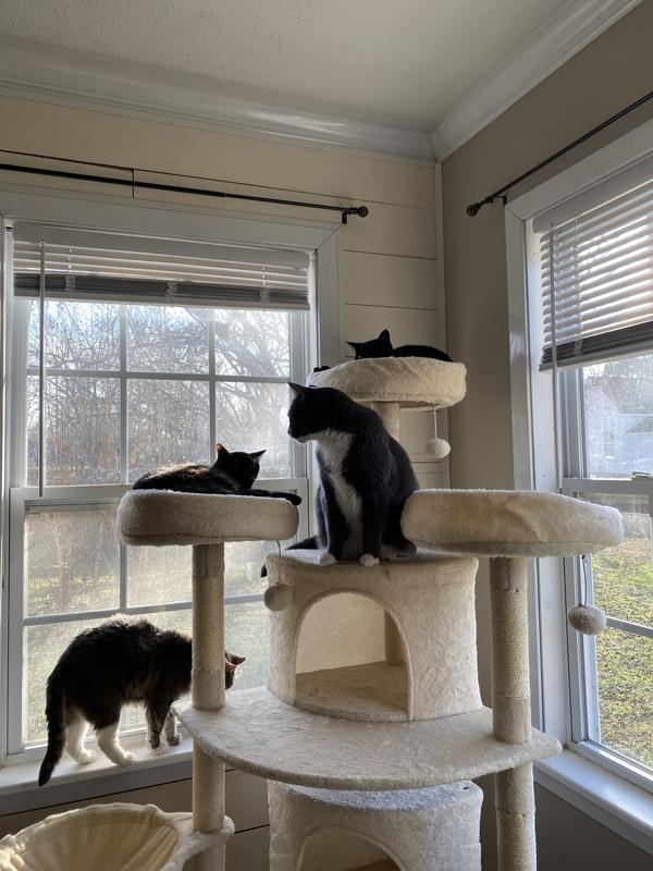 I had a very small simple cat tree for years and it was starting to look very sad, very lopsided and scratched up. I bought this new cat tree and my cats are so happy with it. They use it constantly. It’s absolutely perfect for a multi cat household.