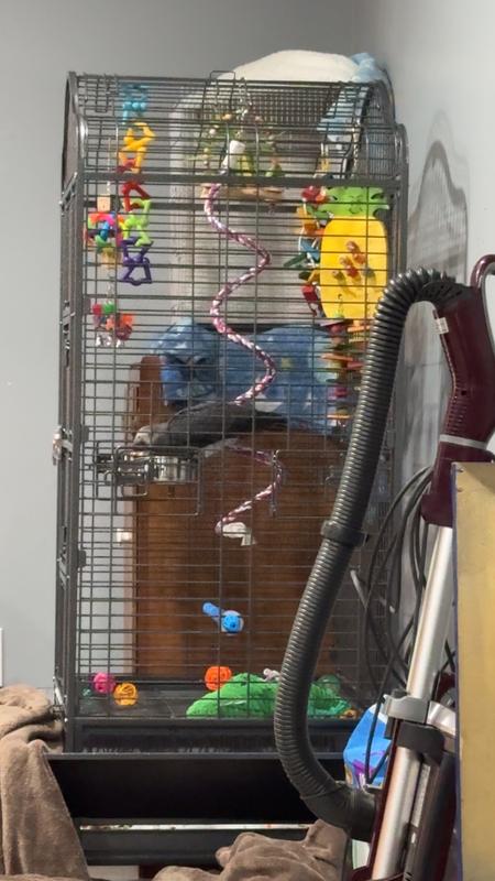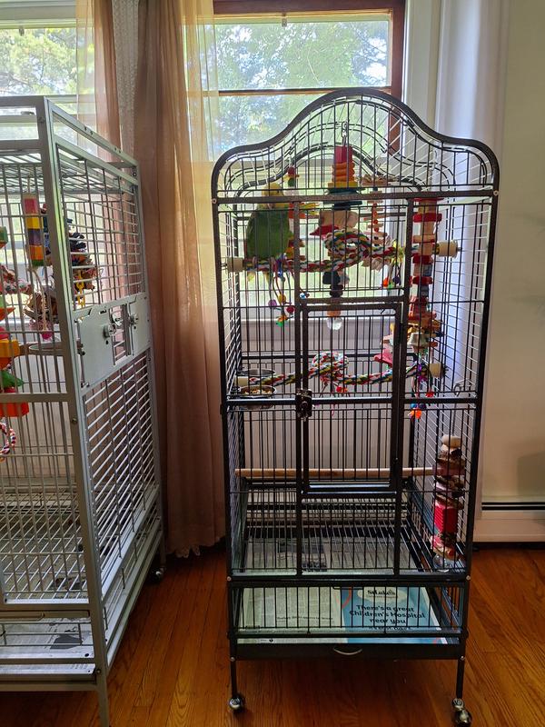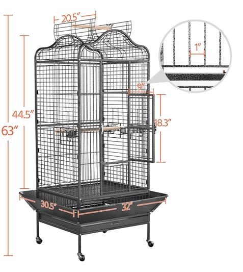 This bird cage is designed for accommodating several medium size birds or one large size bird like African Grey. The playtop on the cage can be opened and closed when used without the ledge.