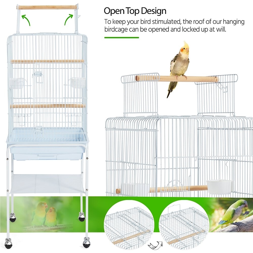 Yaheetech Play Top Detachable Rolling Stand Metal Bird Cage, White