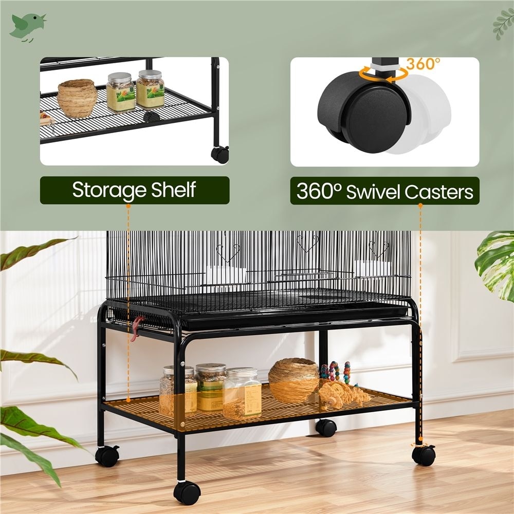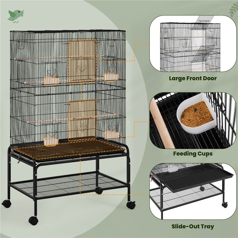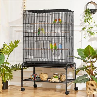 Yaheetech Rolling Metal Bird Cage, Black, 53-in