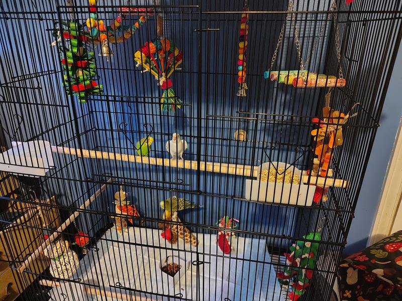 I have four parakeets that don’t get out of the cage as much as the should probably. So I bought this cage so they could fly and exercise in there when I can’t have