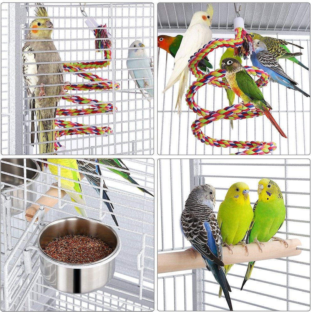 - Spacious cage can easily accommodate several small to medium birds including lovebirds, budgies, cockatiels, green-cheeked conures, sun parakeets and more.
