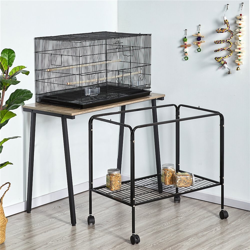 Yaheetech Rolling Stand Extra Space Wood Perches Bird Cage, Black