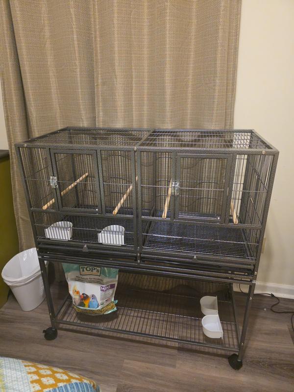 The dividing grate removes easily to create a larger communal space, and you can also remove the cage top from the base for separate use. This cage is perfectly sized for housing 3-4 small birds such as lovebirds.