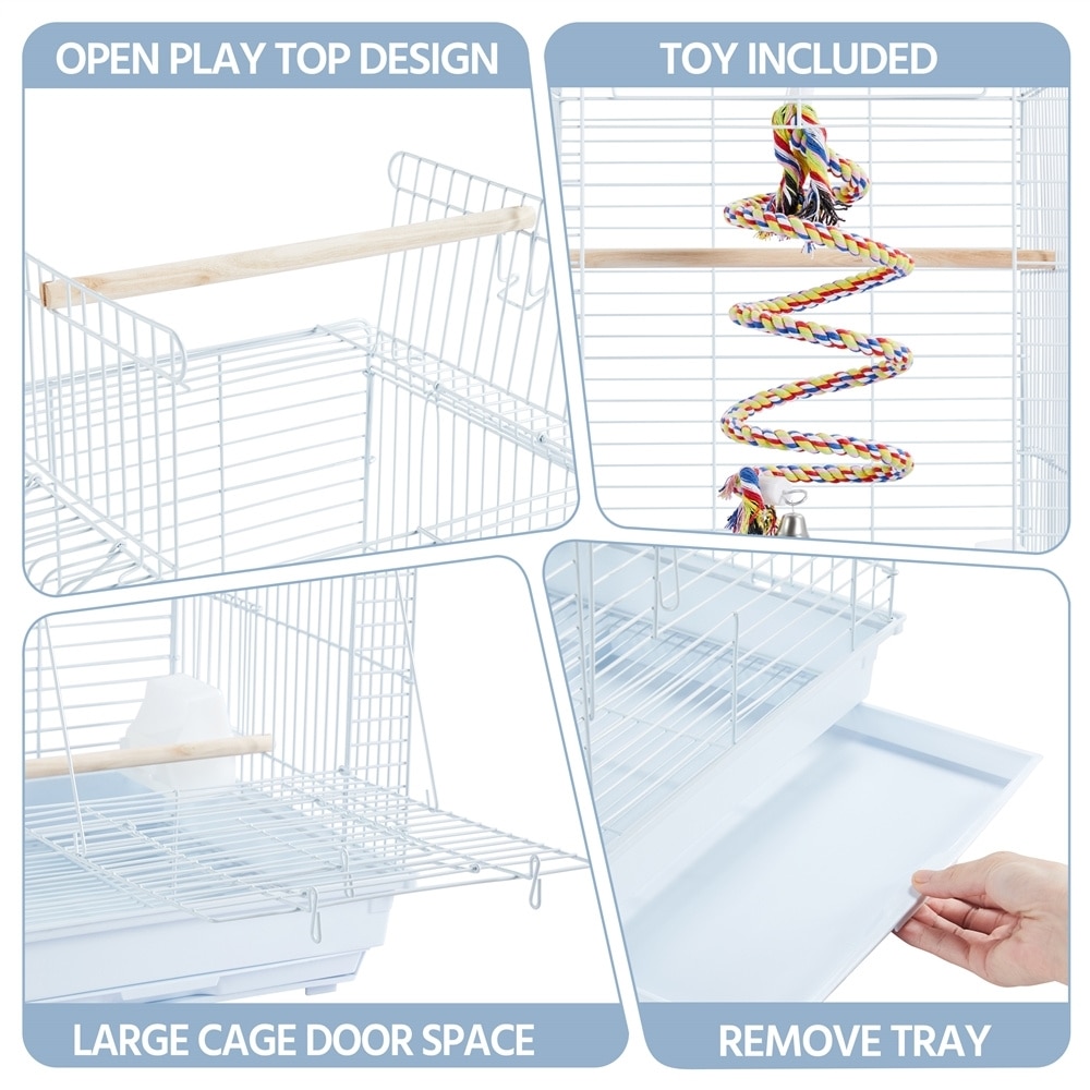 An interactive playtop allows your feathered friend to stretch its wings and play outside the cage.
