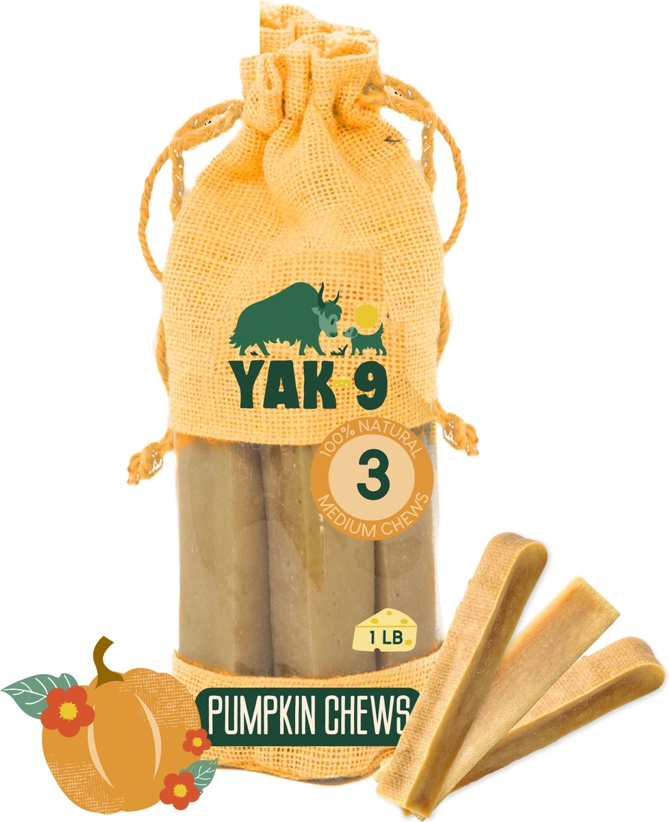 Yak9 Chews Pumpkin Yak Chew Dog Treat, Medium, 3 count