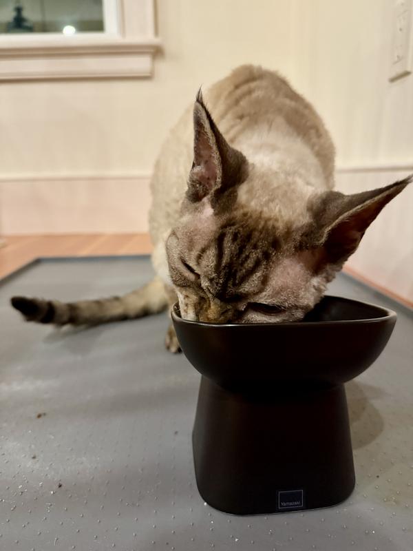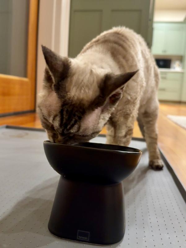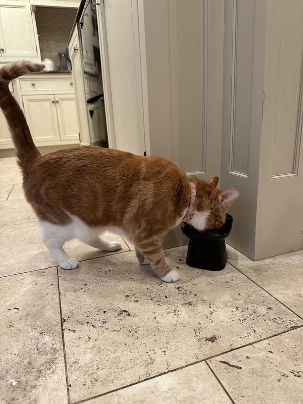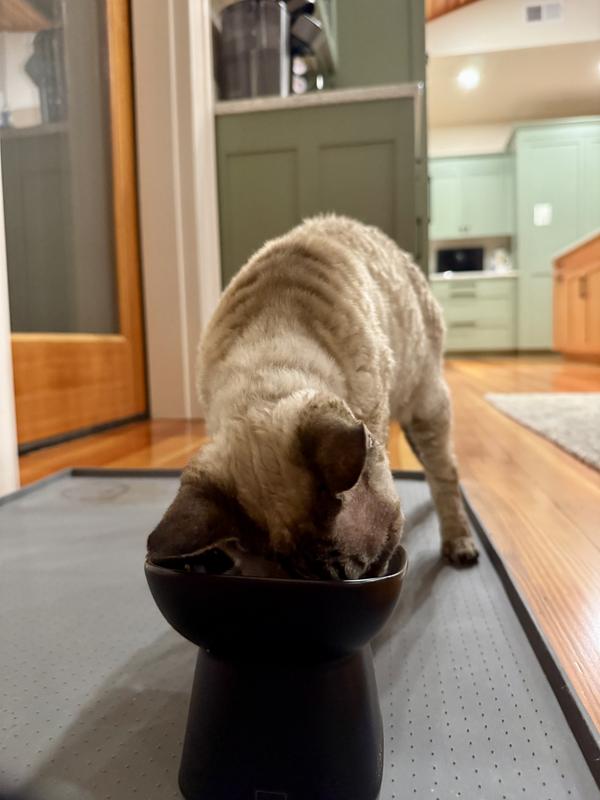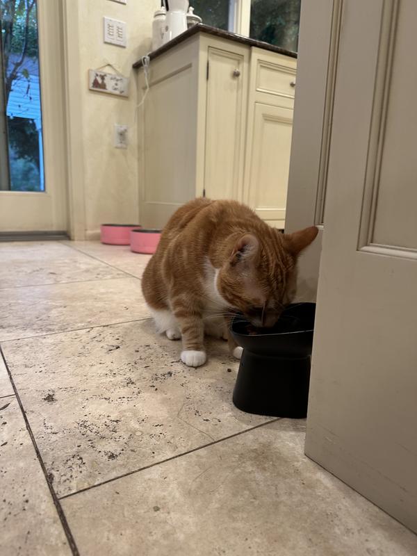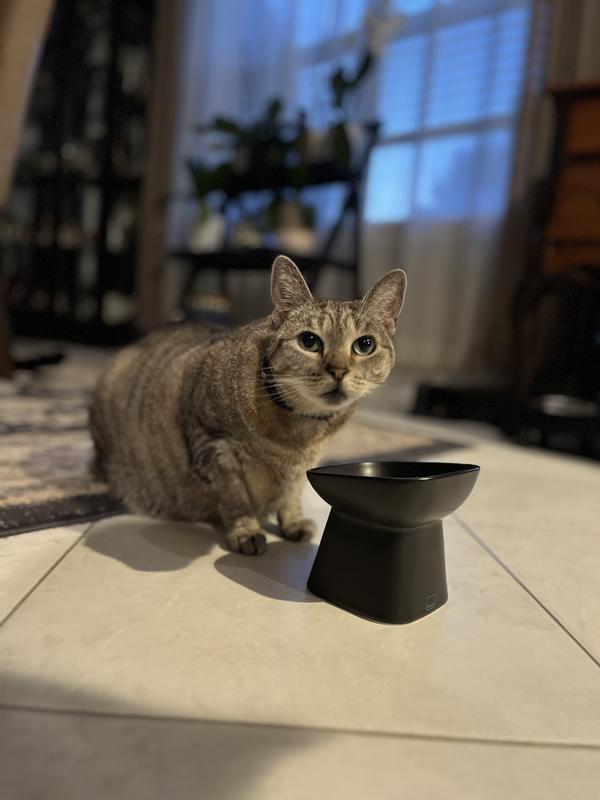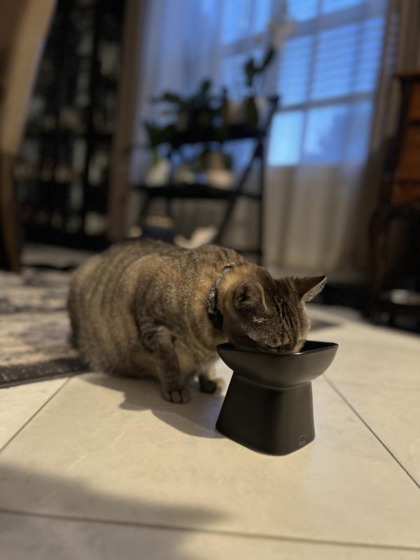 This Cat Bowl in black is not only beautifully designed — sleek, modern, and elegant enough to blend right in with my kitchen — but it’s also been a real help for my almost 17-year-old cat who has arthritis. The gentle tilt and elevated height bring his food up to a comfortable level, so he doesn’t have to crouch or strain his neck and shoulders while eating. I’ve noticed he eats more easily. It’s sturdy, easy to clean (dishwasher safe), and looks like a piece of modern decor instead of a pet accessory. It’s perfect for any cat, but especially older ones who need a little extra comfort.
