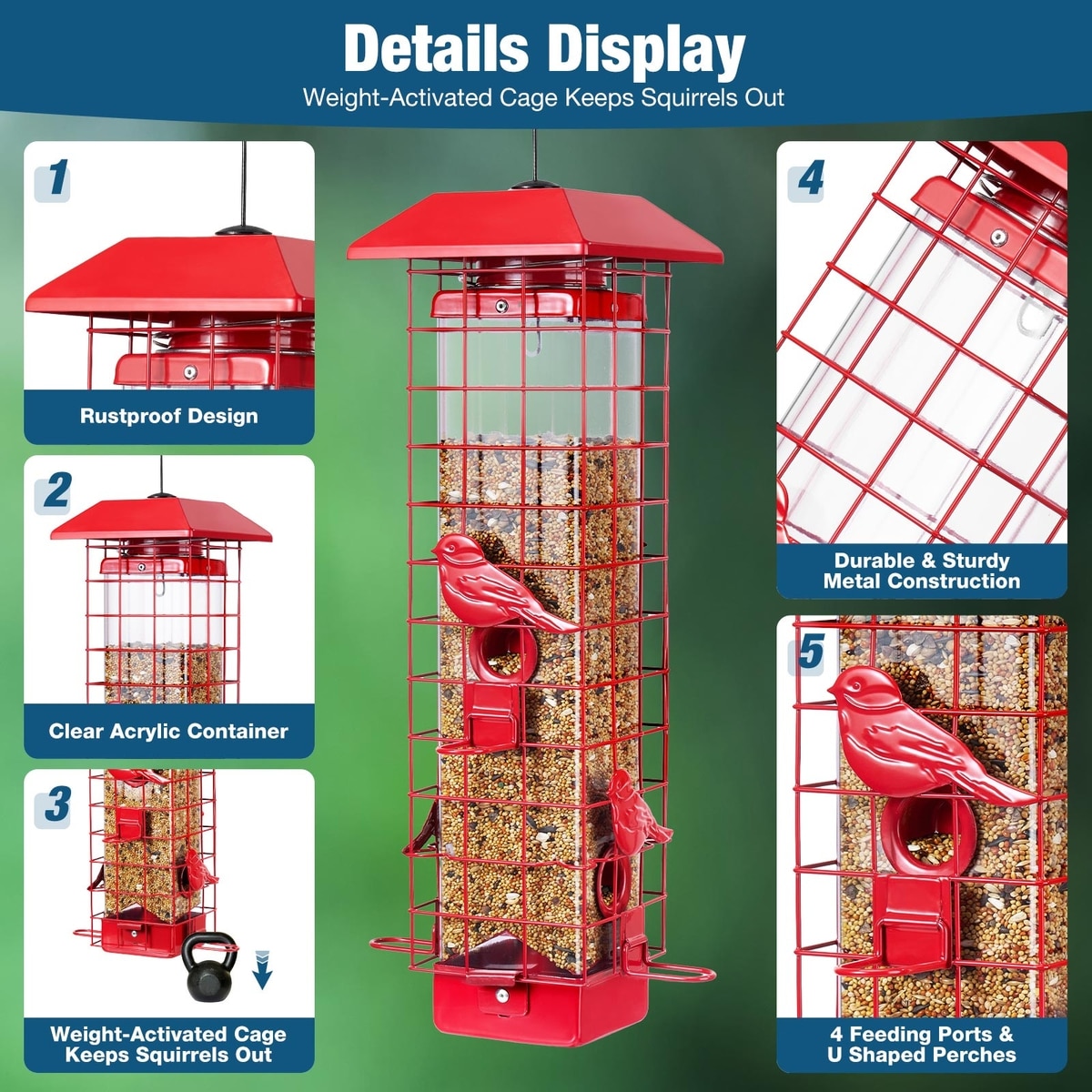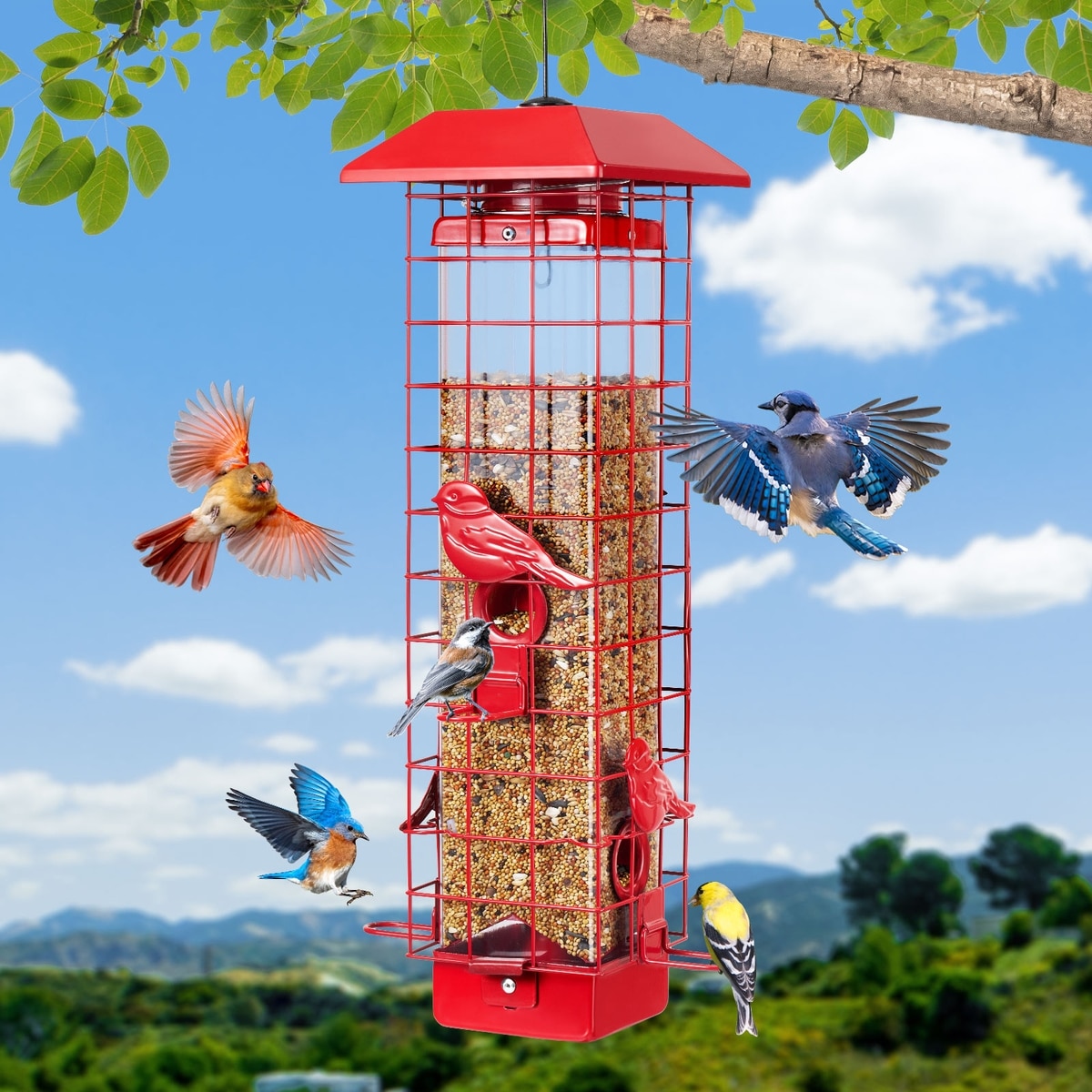 Yarty Squirrel Proof Wild Bird Feeder, 3-lb, Red