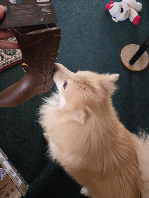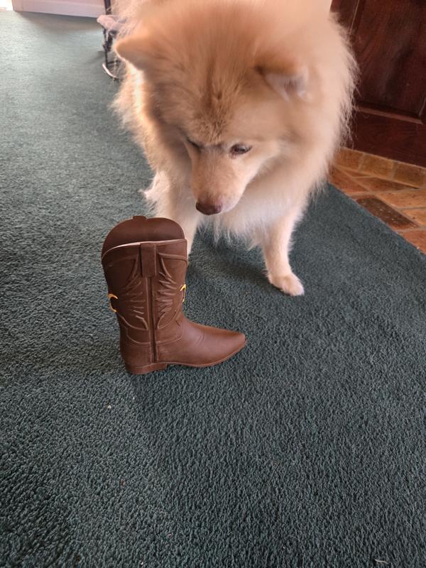 - Save your actual cowboy boots and have your pup chew on this soft and squeaky latex toy instead.
