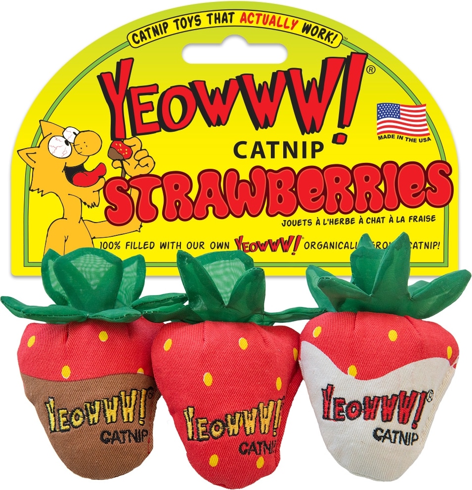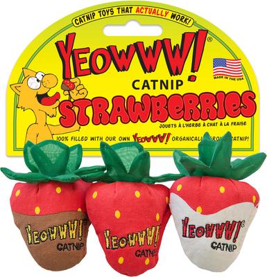 Yeowww! Strawberries Cat Plush Toy with Catnip, 3 count