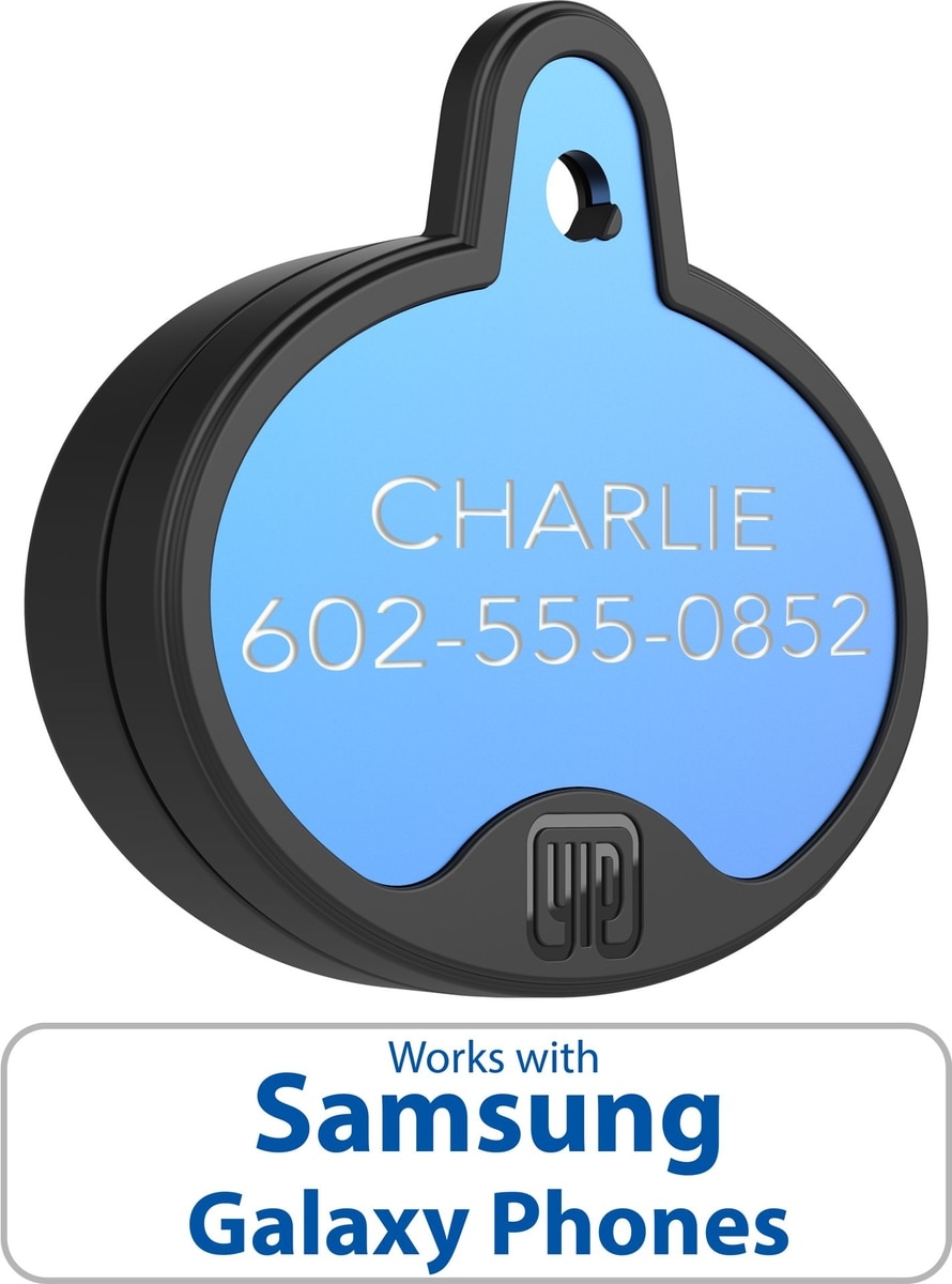 YIP Smart Tag Dog ID Tag - Works with Samsung Galaxy Phones, Oval, Blue