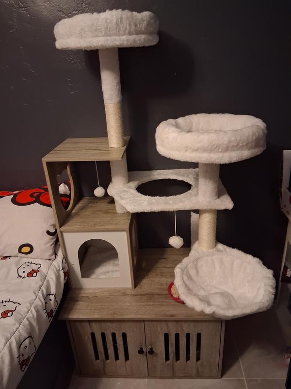 Yitahome 2-in-1 59-in Sisal Cat Tree with Litter Box Enclosure, Beige & White