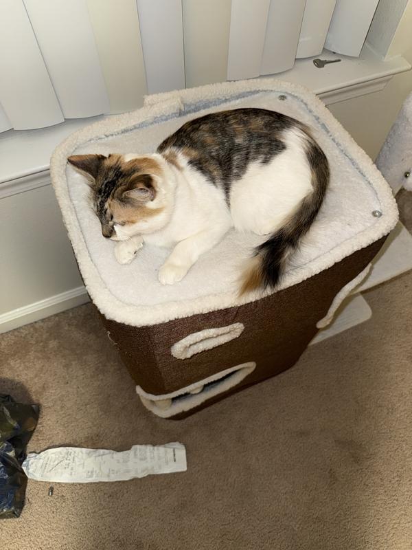 - Designed for multi-cat households, this condo provides a sturdy and comfortable space with thick board and soft cashmere pad.