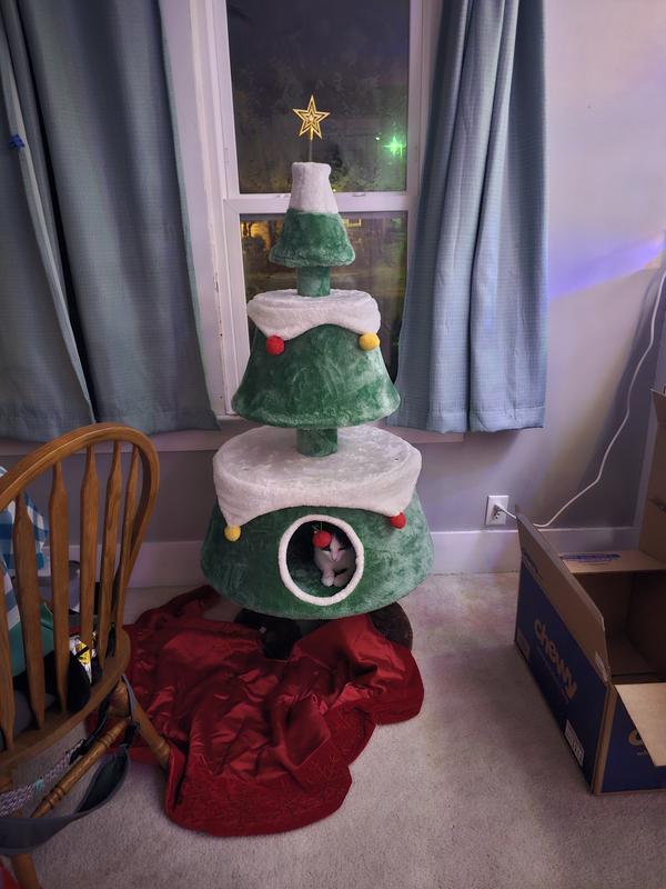 This cat tree requires assembly upon delivery and can be easily disassembled after Christmas.