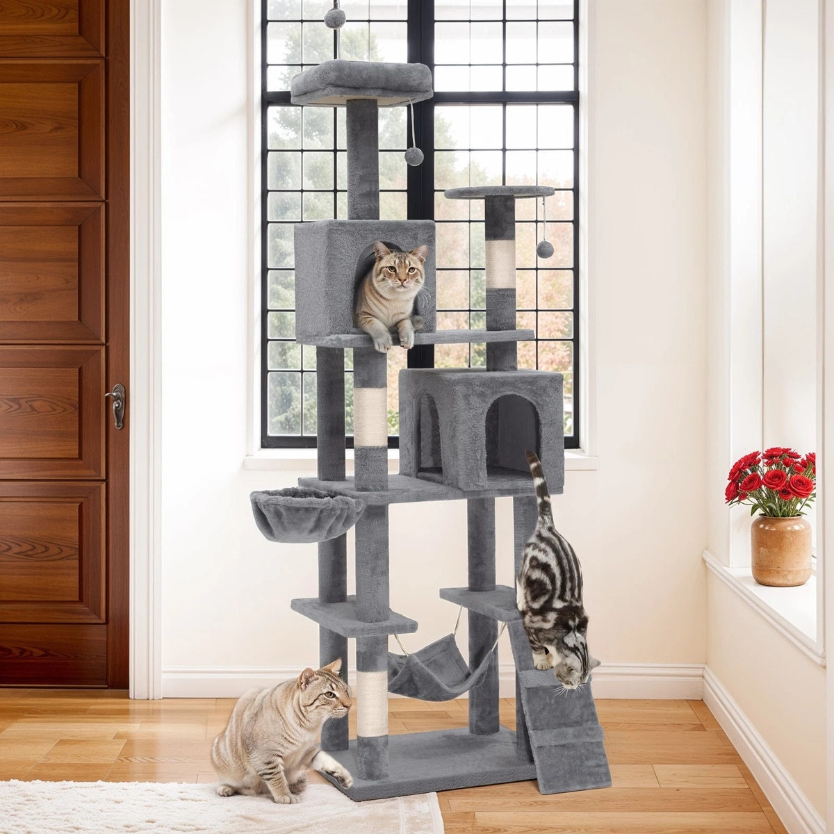 - Includes a comfortable hammock for your cats to luxuriate in.