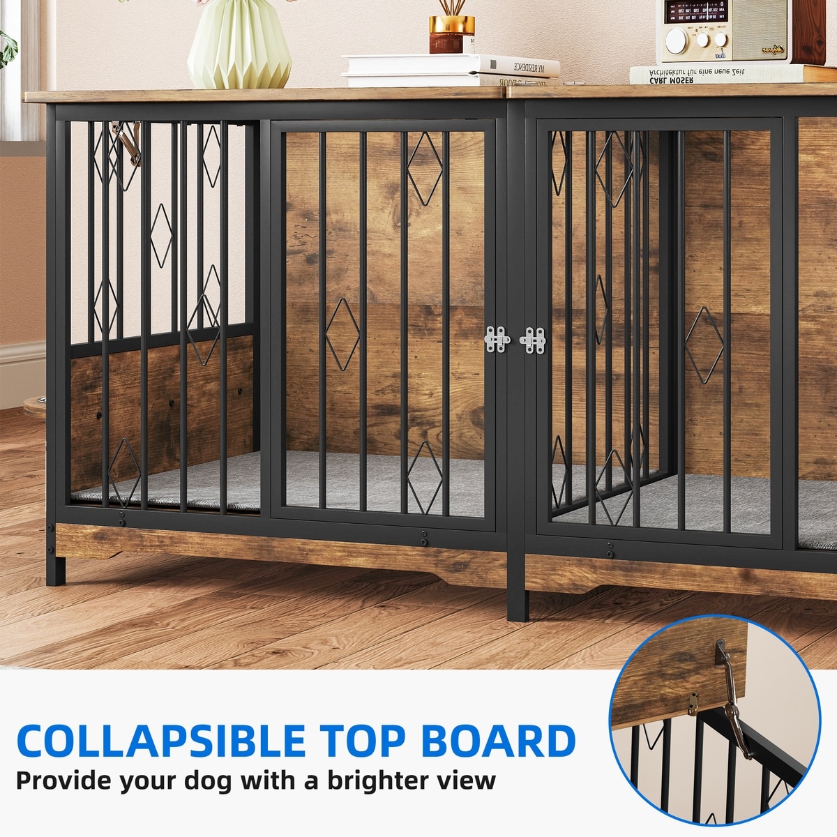 - The warm wood finish adds a touch of elegance to your home while providing a chic pet enclosure.