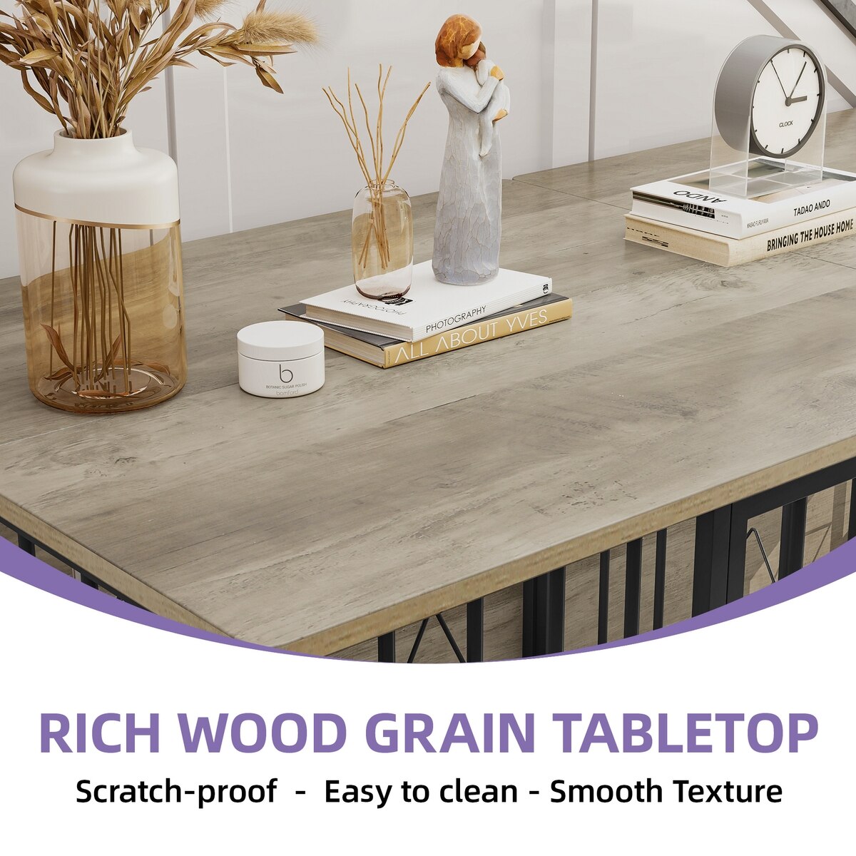 - Features a spacious top surface for decor or electronics, making it a versatile piece of furniture.