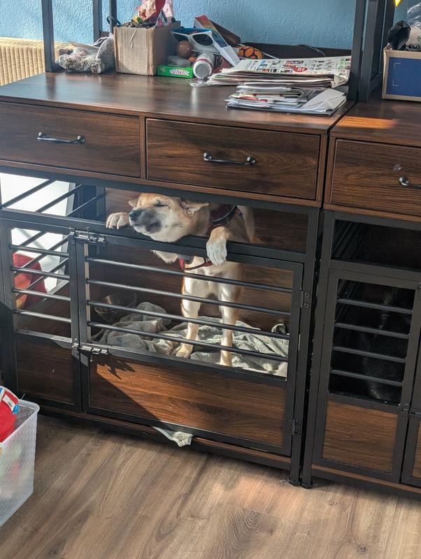 Honestly, I love this so much. Plenty of room for my dog and she loved it right away. Is super sturdy, solid furniture and plenty of storage for your own personal/ pet’s belongings. The only bad thing about it is that while building it, it was very complex and I had to be paying a lot of extra attention otherwise you will mess it up easily and have to re-do steps quite often.