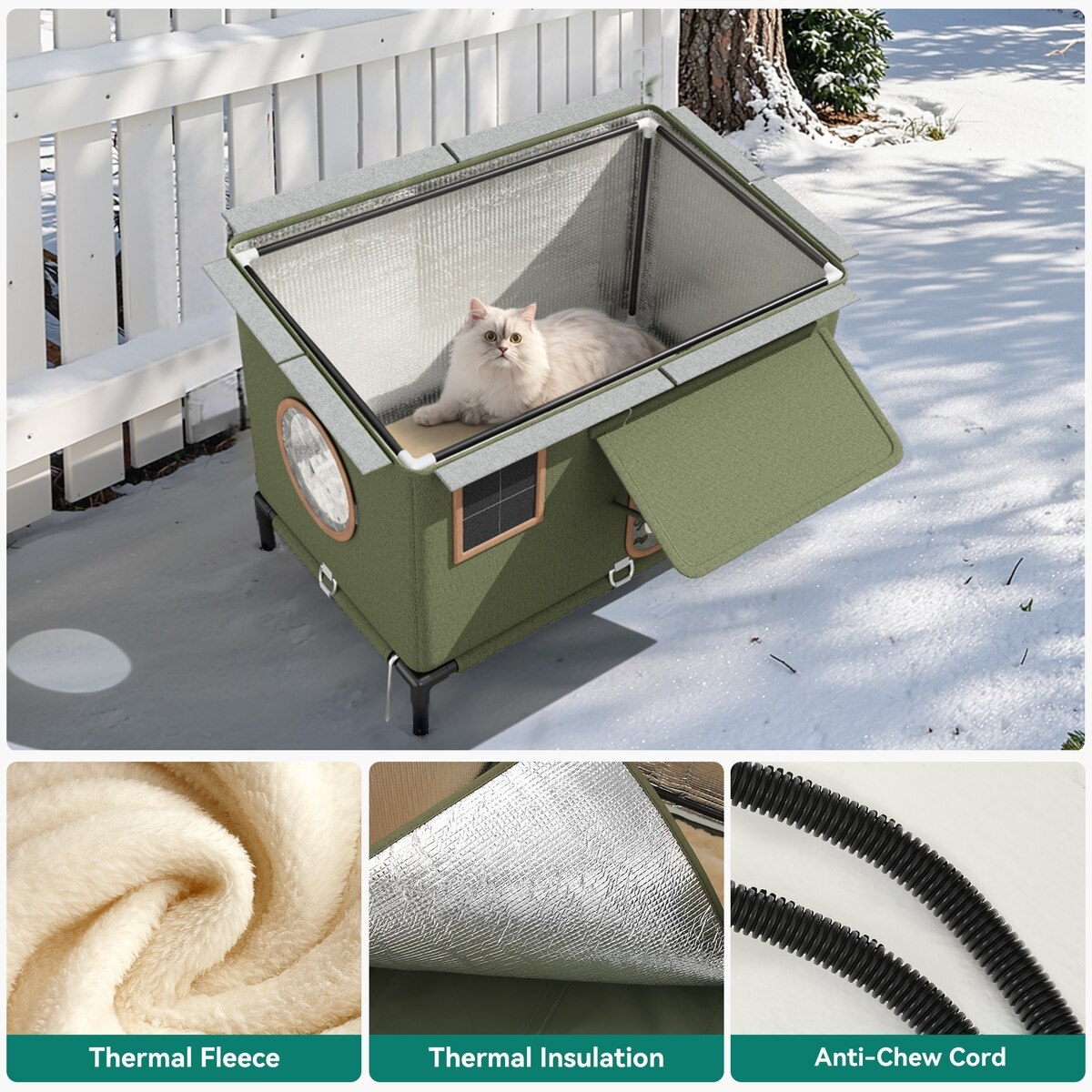 - This insulated shelter features a controlled heating pad, waterproof walls, and a roof to protect against varied weather conditions.
