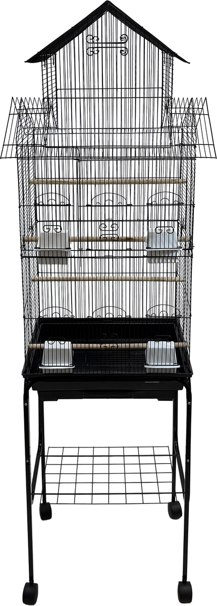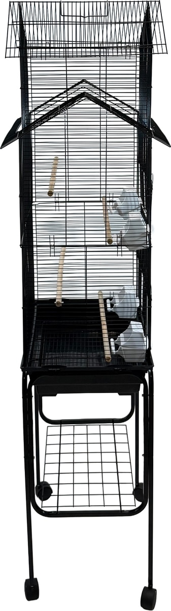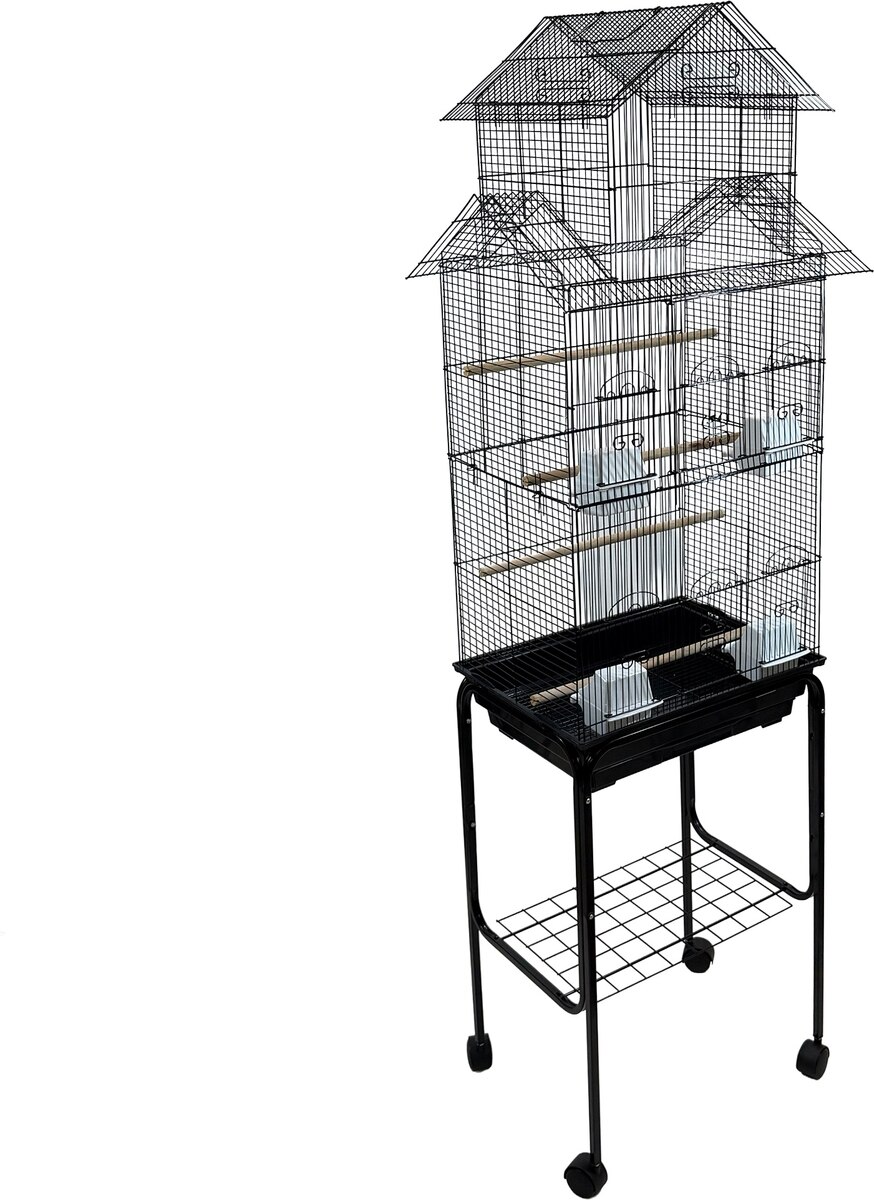 YML Tall Pagoda Top Small Bird Cage with Wheeled Stand, Large: 18 x 14 x 65-in, Black