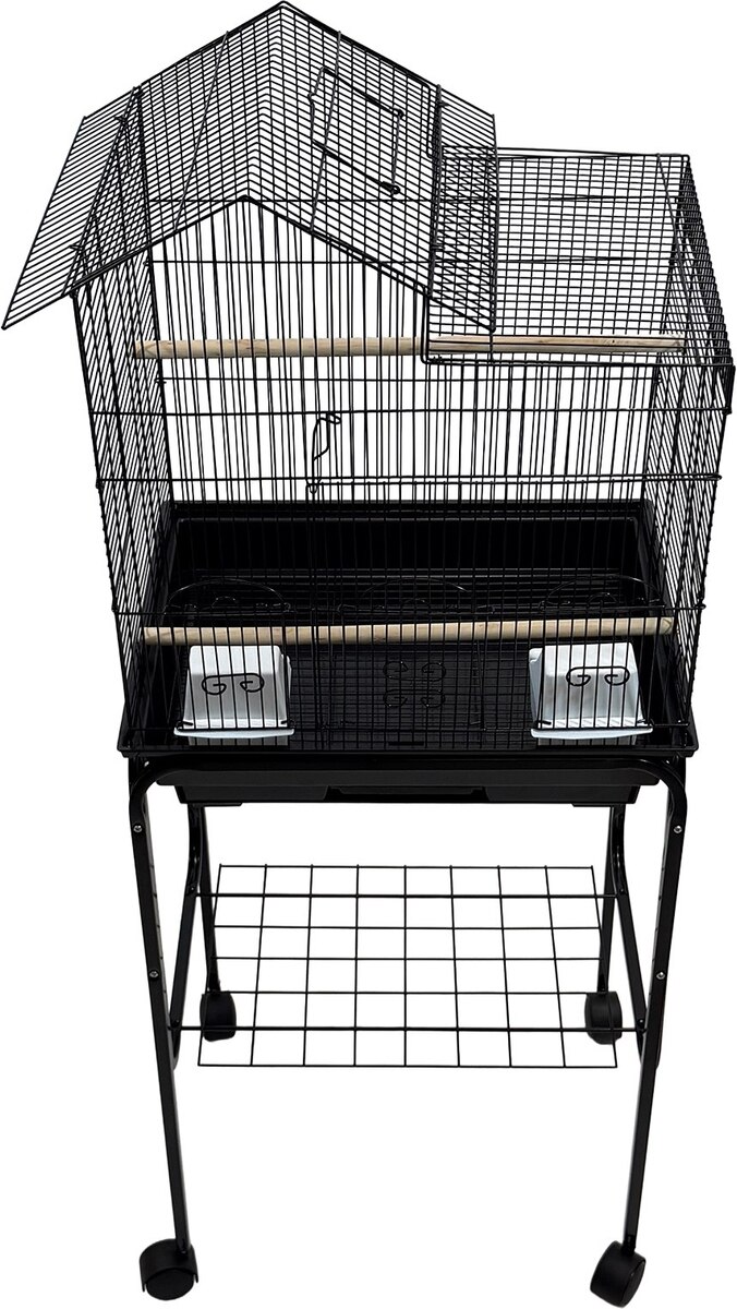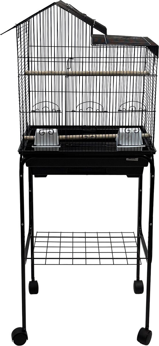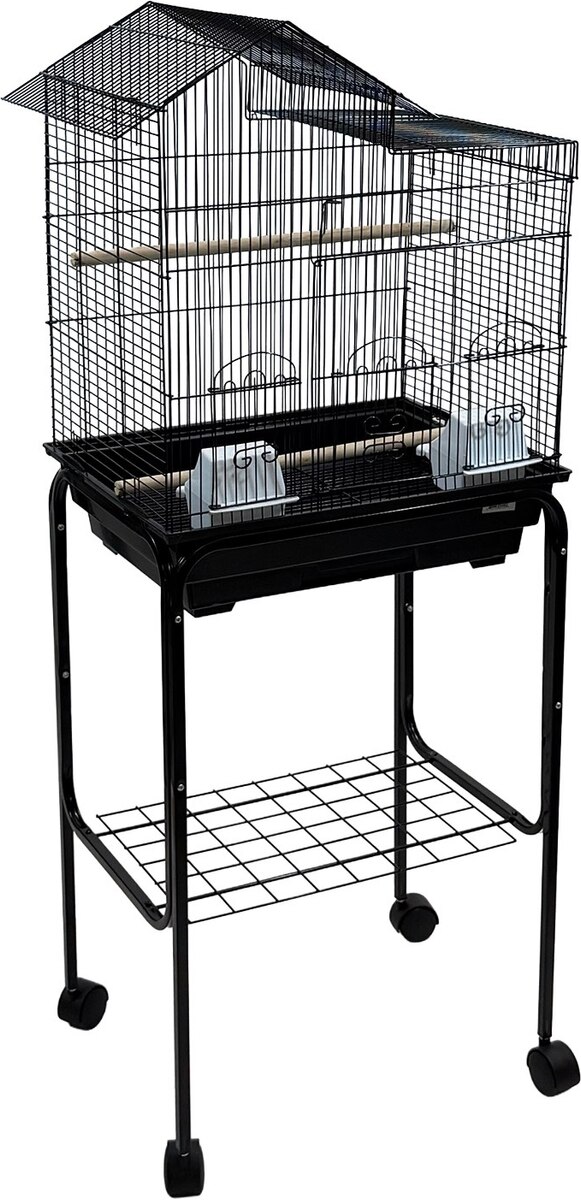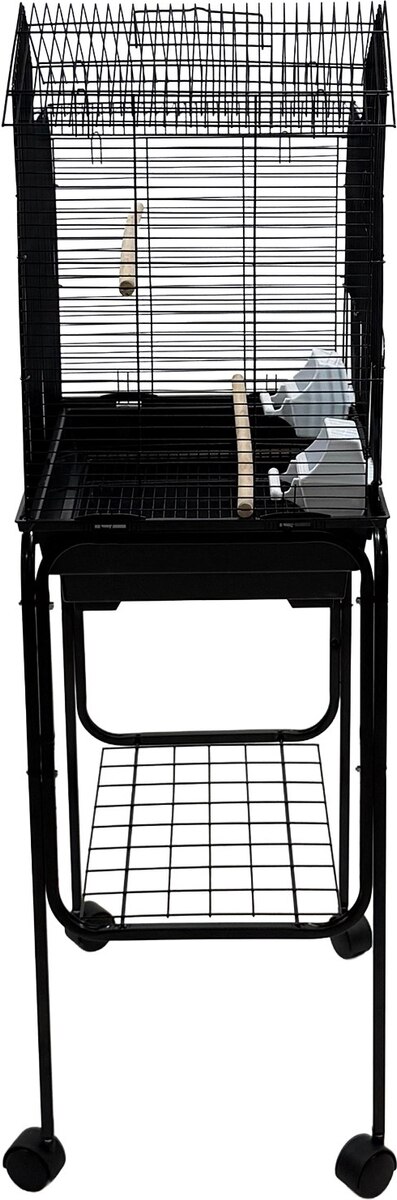 YML Villa Top Small Bird Cage with Wheeled Stand, Medium: 18 x 14 x 49-in, Black