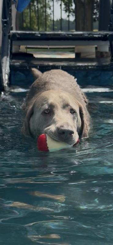 This toy has moved to the top favorite for our dog Max! If you have a swimmer, this is the perfect water toy. It floats and doesn’t retain water and is easy for