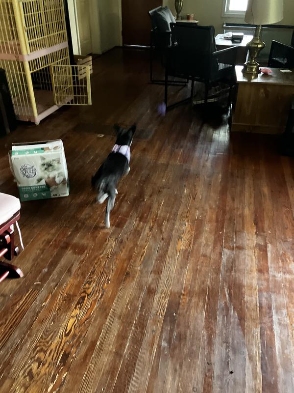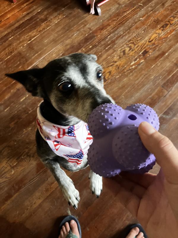 My dog absolutely loved this. It’s a little bit big for her size (she’s an average size Chihuahua), but she is utterly obsessed with fetch. I try to find toys that make her think or take her a little longer so that there’s longer in between throws and this ball going in every which direction was perfect! We played in the house with it but I think it’s be so much more fun outside on pavement!!