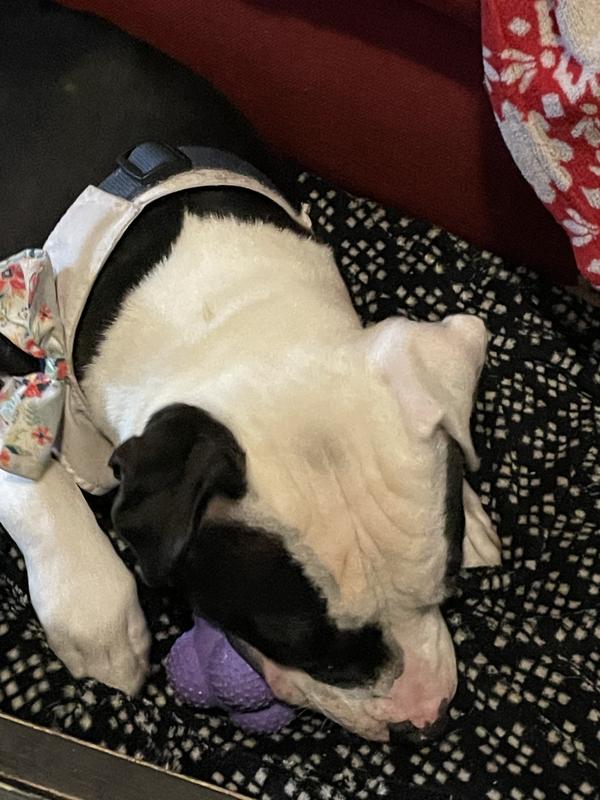 Carlton is a professional toy destroyer so I wasn’t sure even this would hold up, but it kinda did. He was able to damage it by pulling small pieces off, but not large chunks! He likes it so that’s what matters most!
