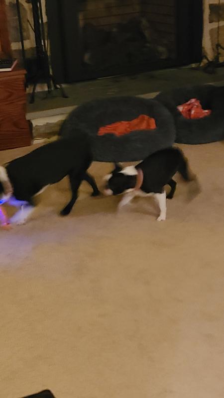 My two dachshunds absolutely love this toy. They follow it around, barking at it, picking it up, dropping it. It completely wears them out. I give them about 30