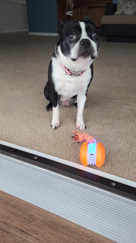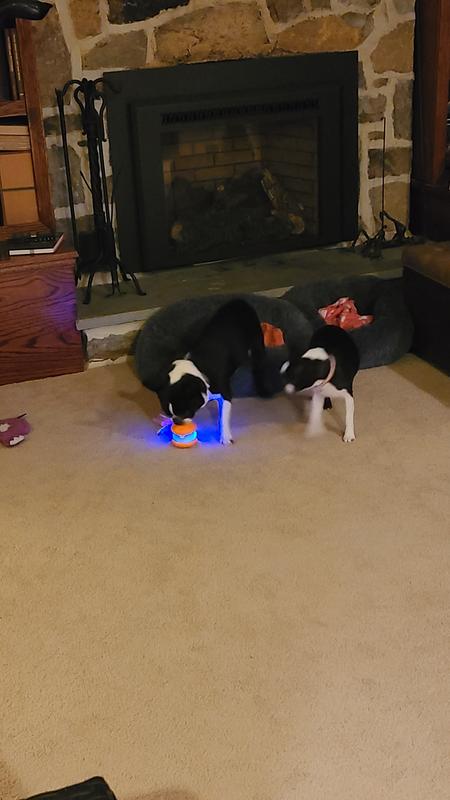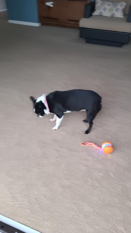 My two dachshunds absolutely love this toy. They follow it around, barking at it, picking it up, dropping it. It completely wears them out. I give them about 30 minute playtime with it because they’re exhausted after chasing it around playing