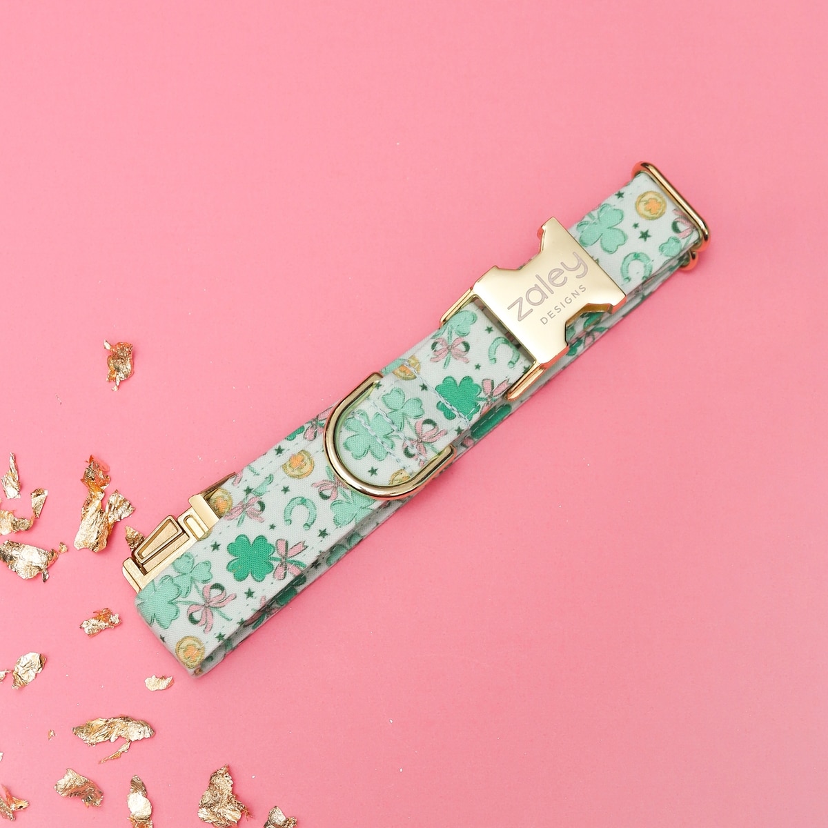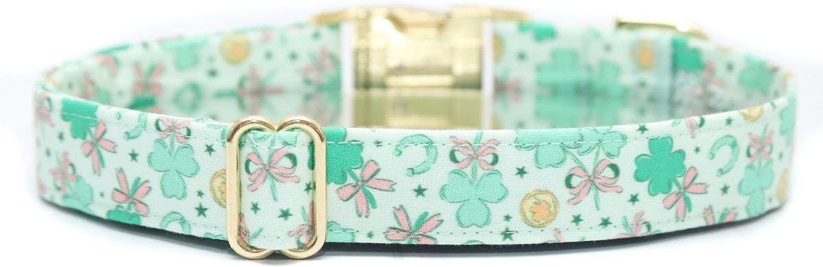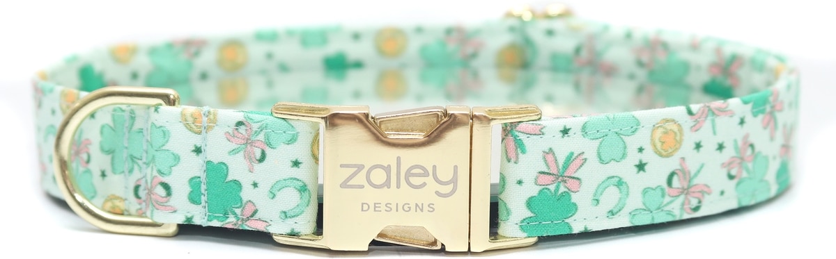 Zaley Designs St. Patricks Day Shamrocks & Bows Adjustable Cotton Dog Collar, Green, Medium