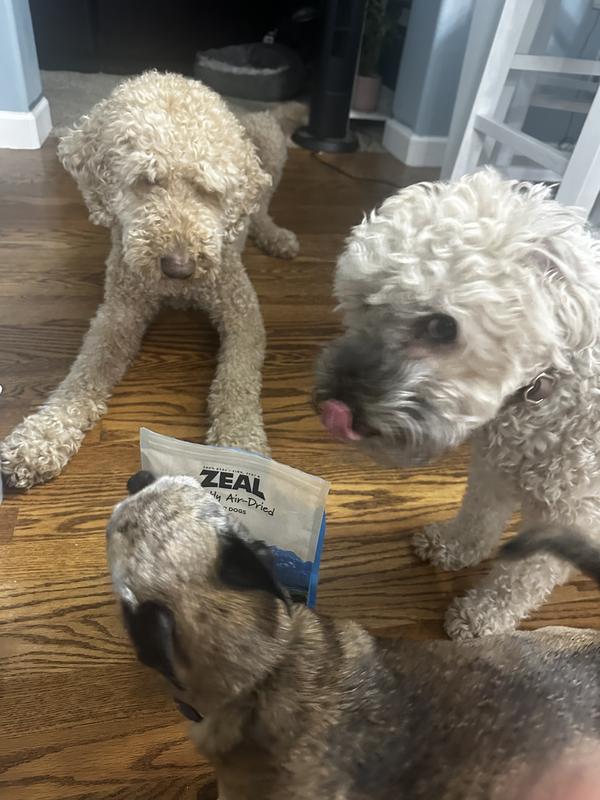 I opened the package, the smell was strong. In seconds I had 5 dogs scrambling up to me to be first. They all loved it! As much as I would like to purchase a larger bag, it wouldn’t last long so I decided to use as treats! The dogs are happy. I too am happy for I’m seeing improvement in their training and performance.