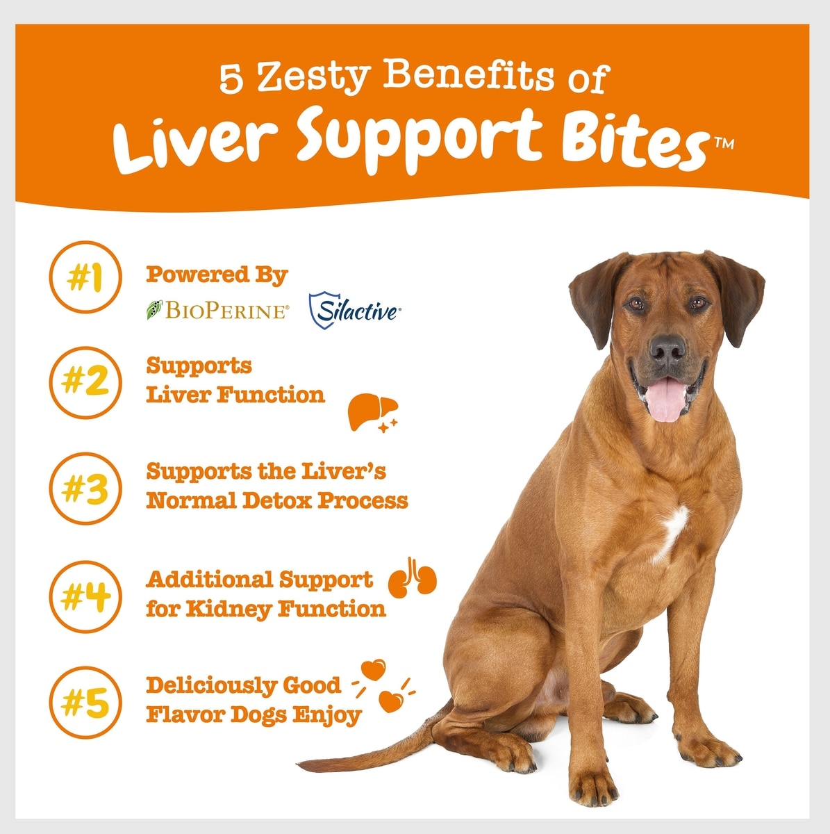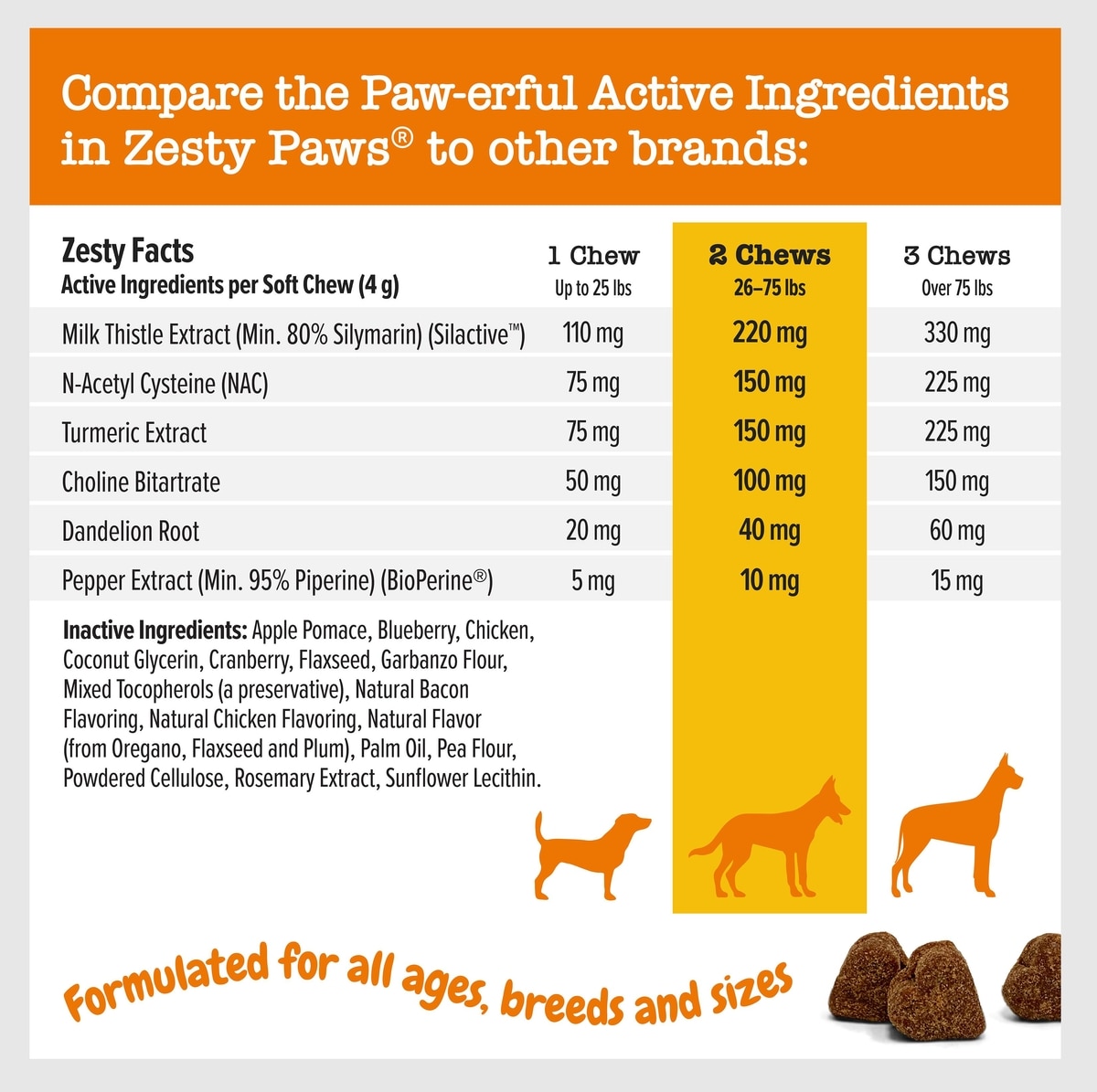 Zesty Paws Liver Support Bites Chicken Flavored Soft Chews Milk Thistle Supplement for Dogs, 180 count