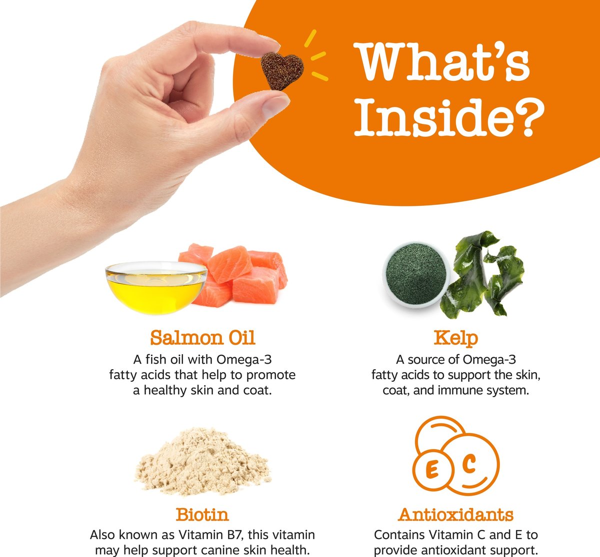 Zesty Paws Skin & Coat Bites Salmon Flavored Soft Chews Salmon Oil Supplement for Dogs, 90 count