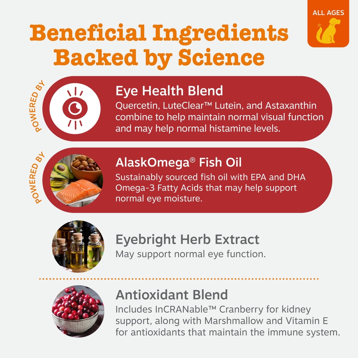Zesty Paws products are inspired by nature and powered by science. Every product is made with unique ingredients sourced from the US and around the globe to help support your dog's zestiest life.