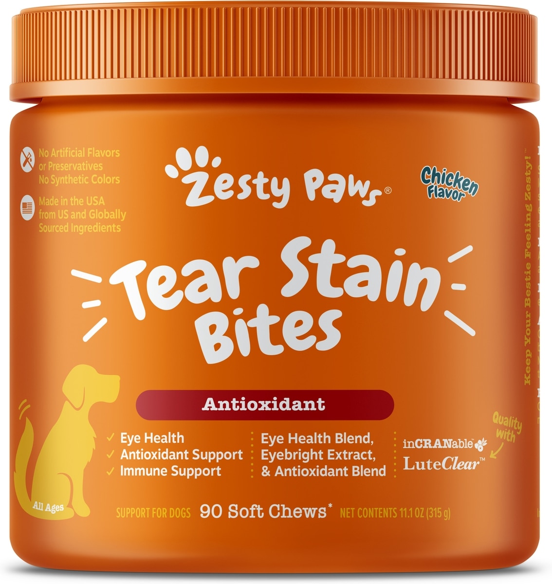 Zesty Paws Tear Stain Bites Chicken Flavored Soft Chews Supplement for Dogs, 90 count