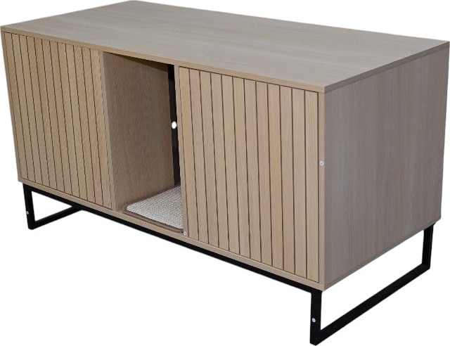 Zeus & Ruta Modern Wooden Cat House with Scratching Mat, Light Brown