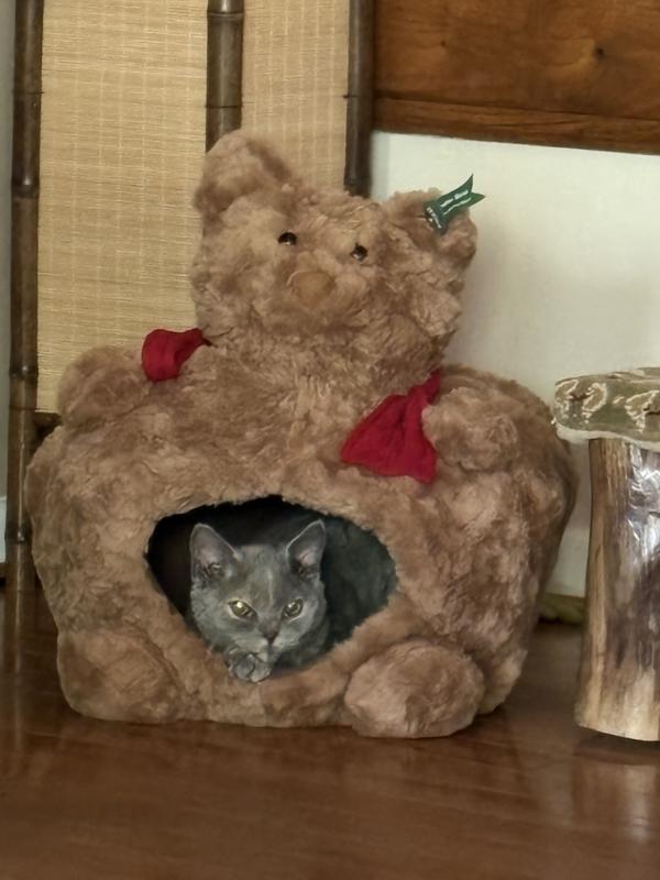 ZEZE Bear Soft Nest Covered Cat Bed, Brown, Medium