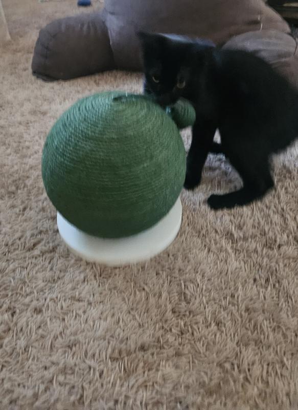 This is a great toy. I’d have given it 5 stars except for one thing. The footing is too small and the ball topples over too easily. I am going to attach a larger foot and see how it goes, because my kitties LOVE it when it is upright. This would however be perfect as-is for kittens.