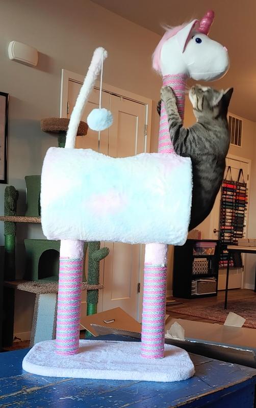 Loved this until the kitties started scratching on the sisal legs, then within a day it started to unravel. Would buy again if this flaw was fixed/made more secure. Chose wisely...