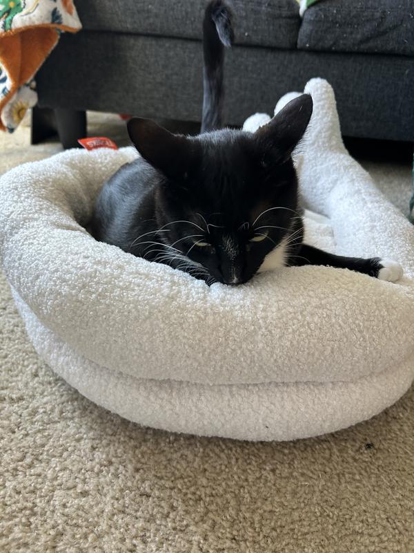 This is the BEST BED ever ! We adopted out a kitten when she was probably 3 months old to what we thought would be a great home unfortunately it was not. We got a call from the adopter when the cat was now two years old they wanted to return her did not want her anymore and of course we took her back with open arms. The cat had been put on unnecessary medication and had been abused. We are still working with this wonderful cat she is not on medication it wasn't even needed she is starting to trust more she will not be re-homed she has been through enough this will be her forever home. She is happy here and now she has this brand new SPECTACULAR COZY BED that she absolutely LOVE LOVE LOVES !!!!! We cannot thank you enough!