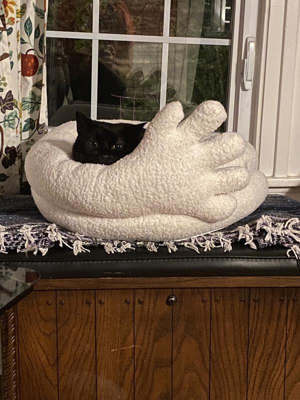 This bed is so cute and an interesting addition to any decor. Super artsy and great quality. It’s very soft you’ll want a human sized one for yourself. It’s a larger