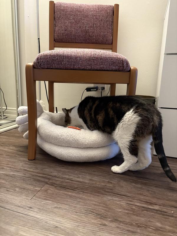 Nermal really don't use cat beds... But she loves this one. Shes 15 years old and is so comfortable in this bed... She makes biscuits, sleeps., it sits right next to my couch. The padding is great for her little old bones. I would definitely recommend this producto my friends.