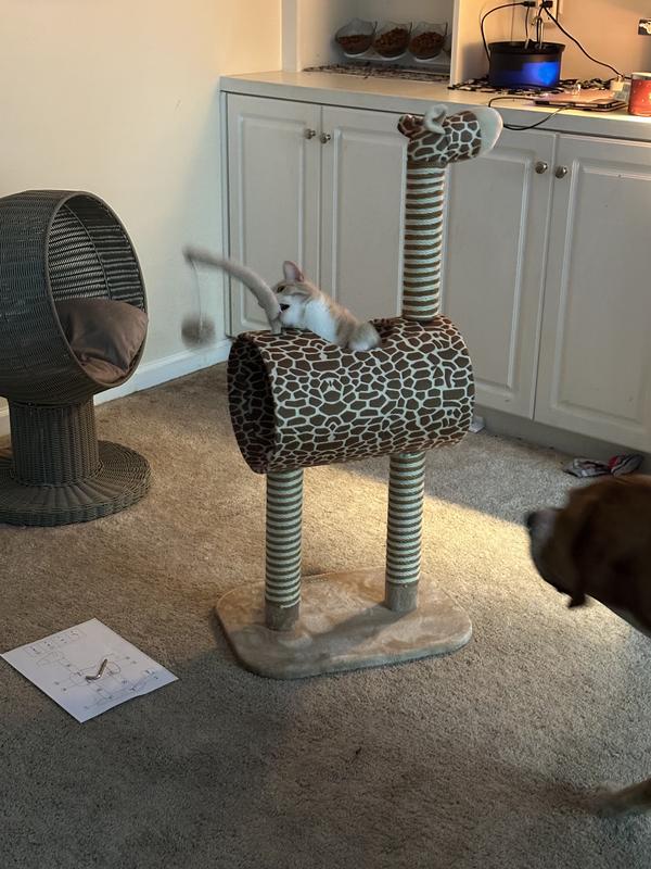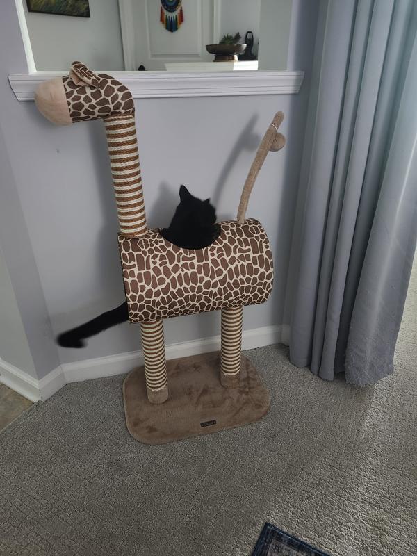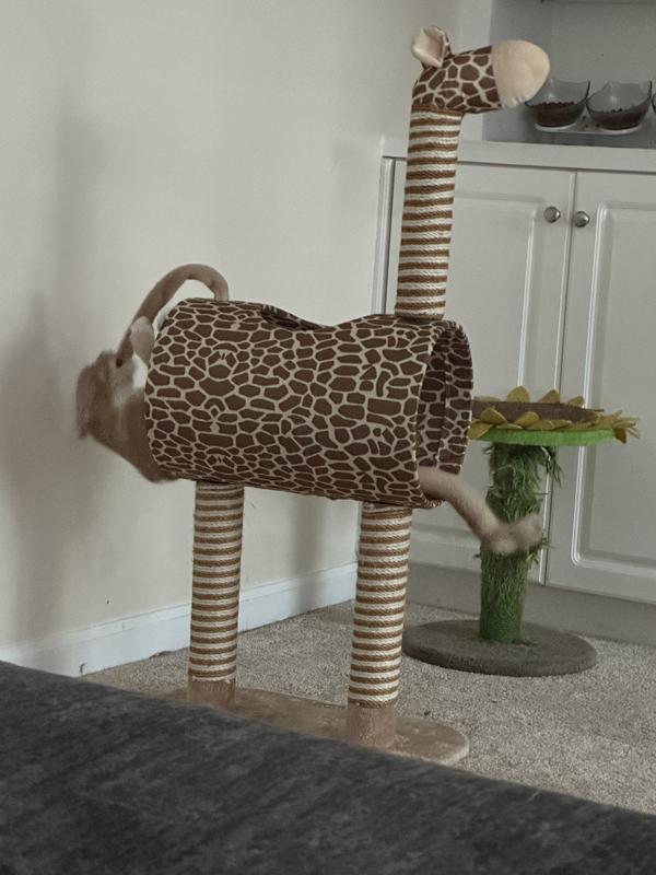 We have 2 of these Giraffe trees which our cats love to play in and our older kitty uses the leg scratch posts. I ordered one for a friend on the west coast for his two newly adopted kittens and they are already playing on it! So for us and also our friend we love the Giraffe!