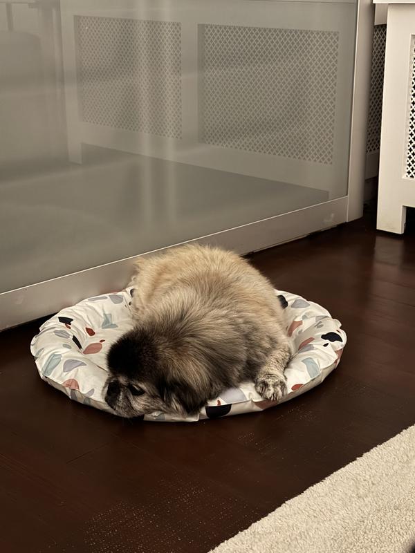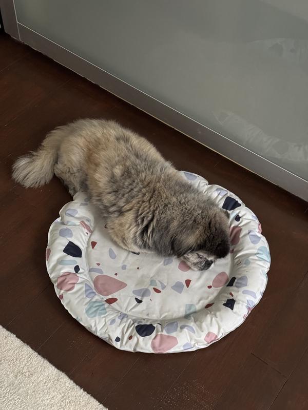 If seems to work. Mushroom, who is a senior, gravitates towards this bed on hot days. However, it’s a tad small. I didn’t realize there were other sizes. Just blindly purchased cause it was cooling and cute, and not overly expensive. Yet still works. However, it’s hard to clean.