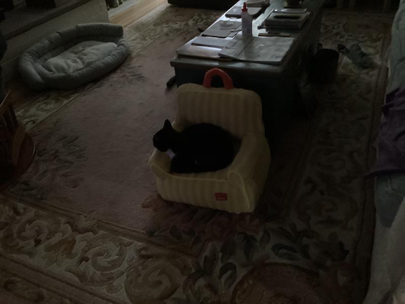 I have cat condos, boxes, beds but this “sofa” is a first. When it was offered I decided to give it a try. First off it is really cute and doesn’t take up much space