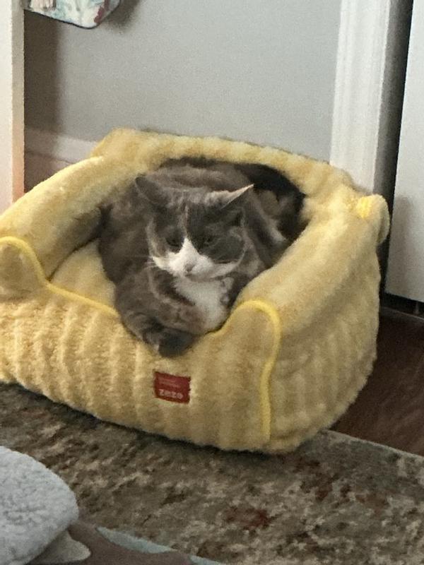 I have cat condos, boxes, beds but this “sofa” is a first. When it was offered I decided to give it a try. First off it is really cute and doesn’t take up much space. Secondly it is well made and even has a zippered bottom so think I can launder. Took a couple days but has become my one cats “place”.